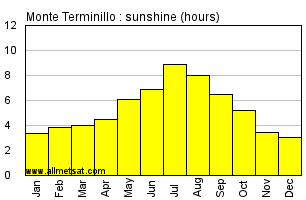 Monthly average number of hours of sunshine per day.